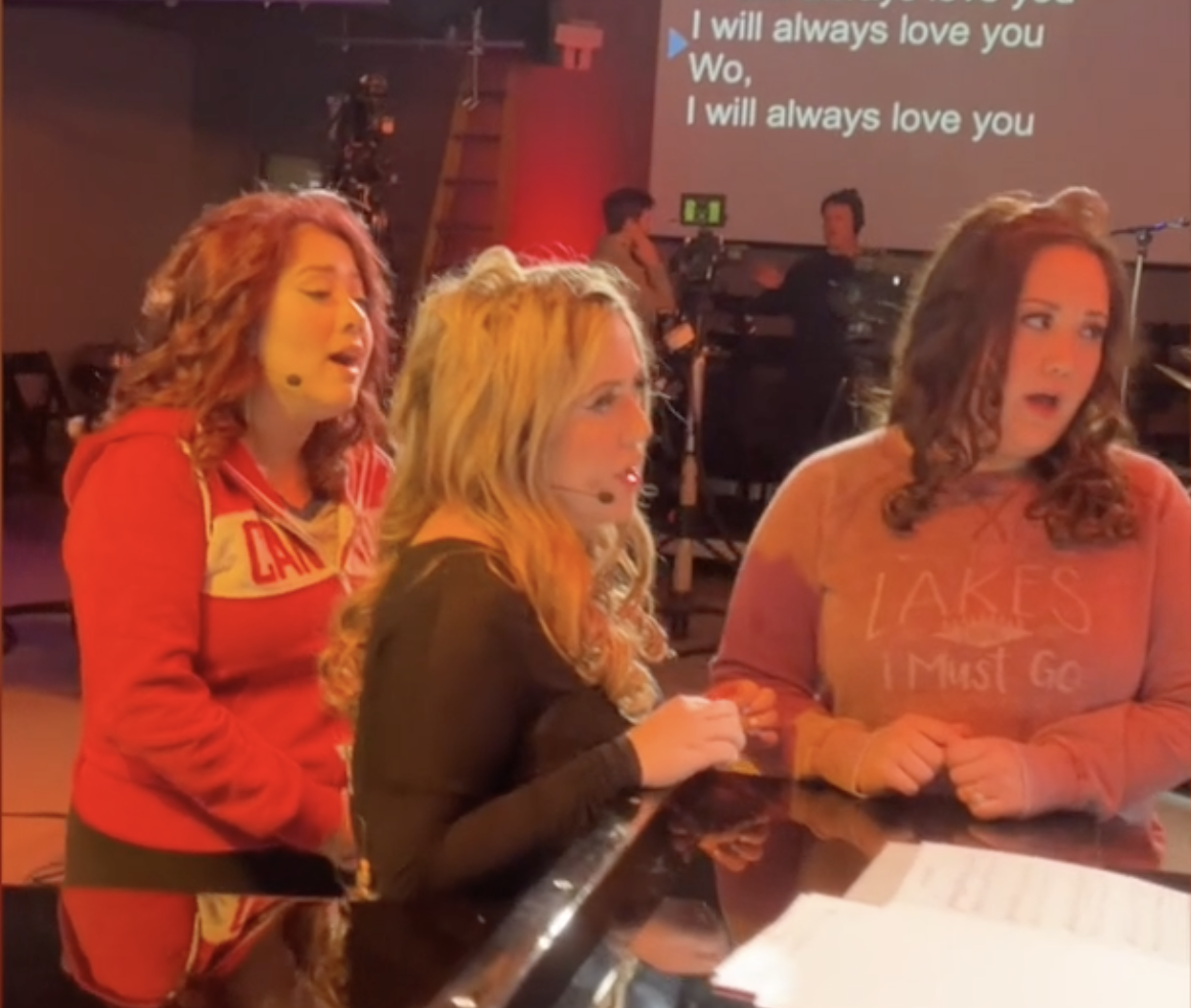 Simon Spiro and the Ault Sisters rehearse “I Will Always Love You”.